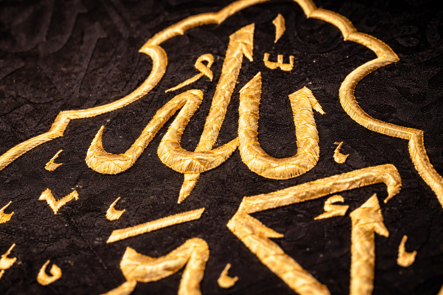 Originally part of the 1444 Hijri Kiswah, this sacred textile represents divine magnificence and Islamic devotion. The elegant Arabic calligraphy is intricately embroidered using premium metal copper wire with a gold-polished finish, reflecting the same craftsmanship found on the Kaaba’s blessed covering.
