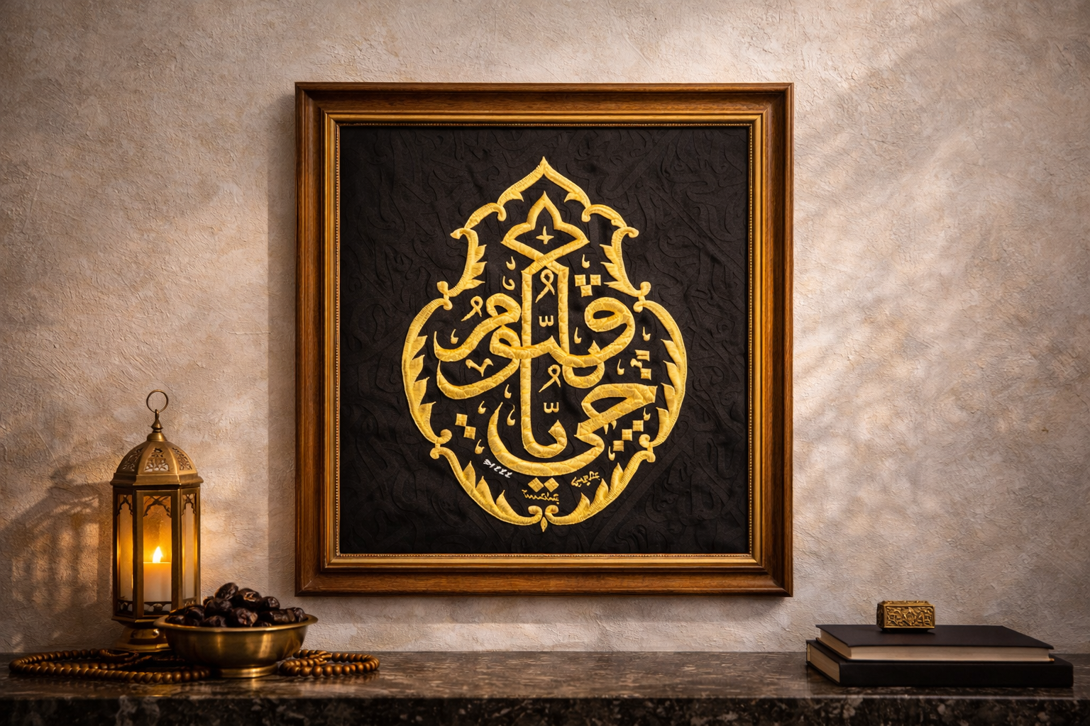 Owning this Kaaba Kiswah Qandeel featuring Ya Hayyu Ya Qaiyoom serves as a timeless reminder of Allah’s eternal presence and sustaining power, creating a peaceful and faith-inspired atmosphere in any Islamic setting.