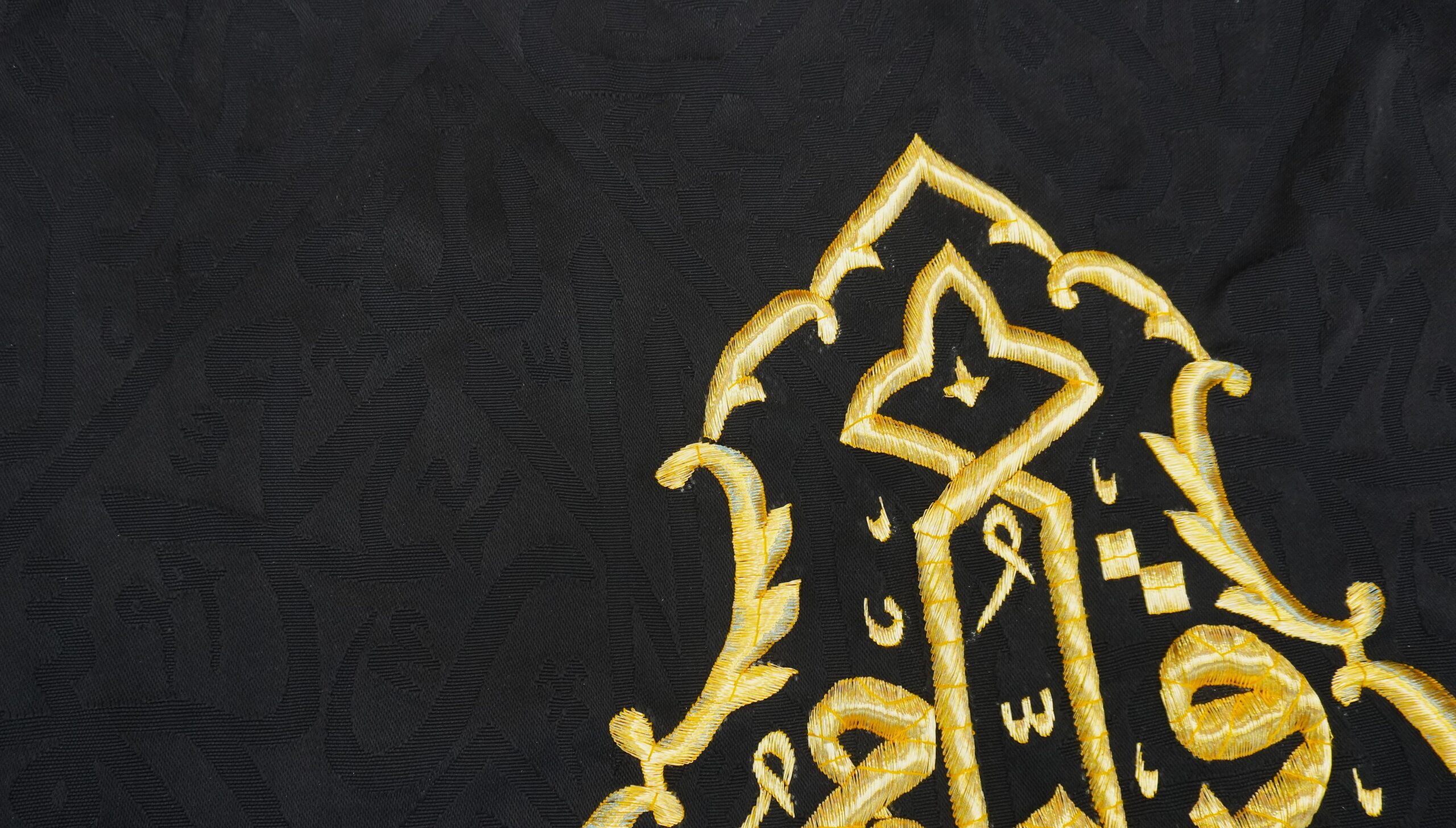 Originating from the 1444 Hijri Kiswah during the King Salman period, this panel reflects spiritual elegance and Islamic craftsmanship.