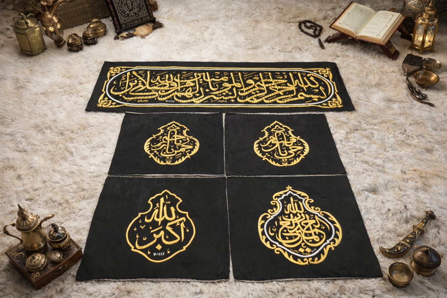 Kaaba Kiswah Qandeel Combo with Hizam Belt (5 Pieces) – Sacred Set