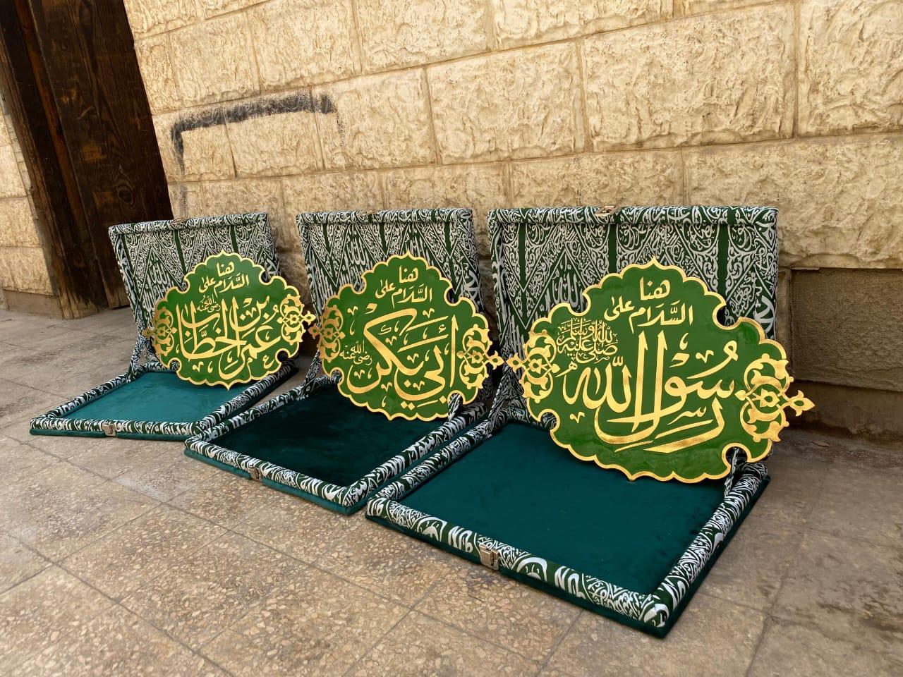 Rawdah Rasool Name Plate Set (3 Pieces) – Madinah Inspired Islamic Calligraphy Wall Decor with Display Box